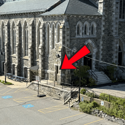 Entrance to the adoration chapel, please ring the bell if the doors are closed